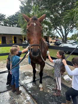 You’ll often see me serving as the demonstration horse during Equitation Club, where I help students learn everything from grooming and groundwork to riding basics. I enjoy the attention and take my job seriously—especially when it involves standing quietly while the kids learn.